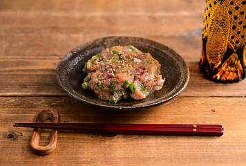 Namerō is a dish made by finely chopping raw fish and mixing it with miso and aromatic herbs.