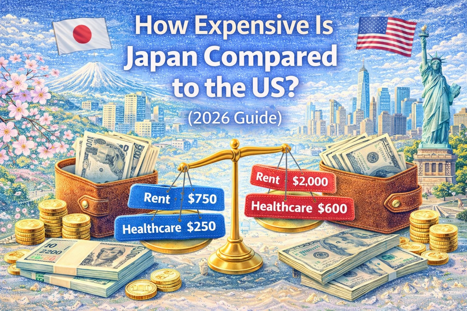 Japan is generally cheaper than the United States for everyday living, especially when it comes to housing, healthcare, and transportation.